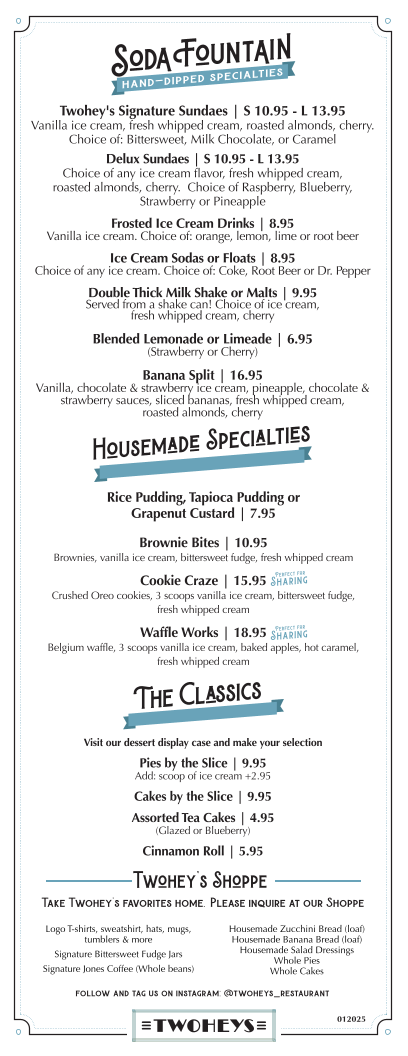 Don’t miss out on their hand-dipped specialties—the Twohey's Signature Sundae is a delightful treat, offering a selection of toppings that elevate vanilla ice cream to heavenly heights.